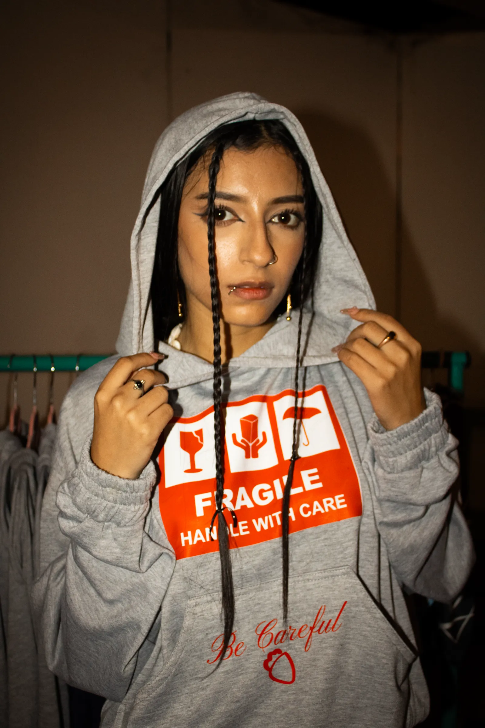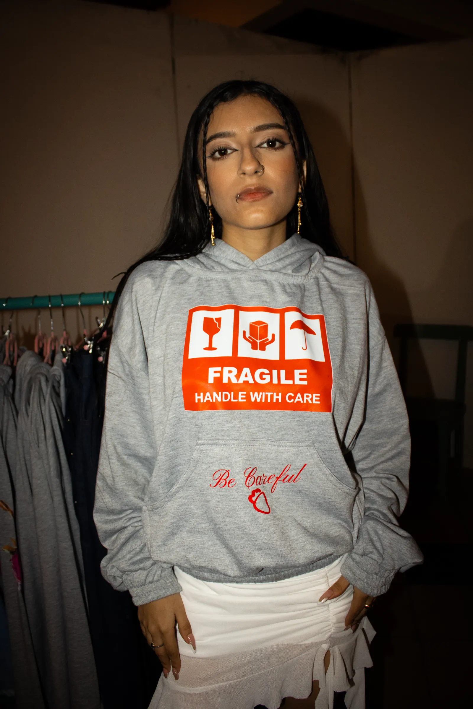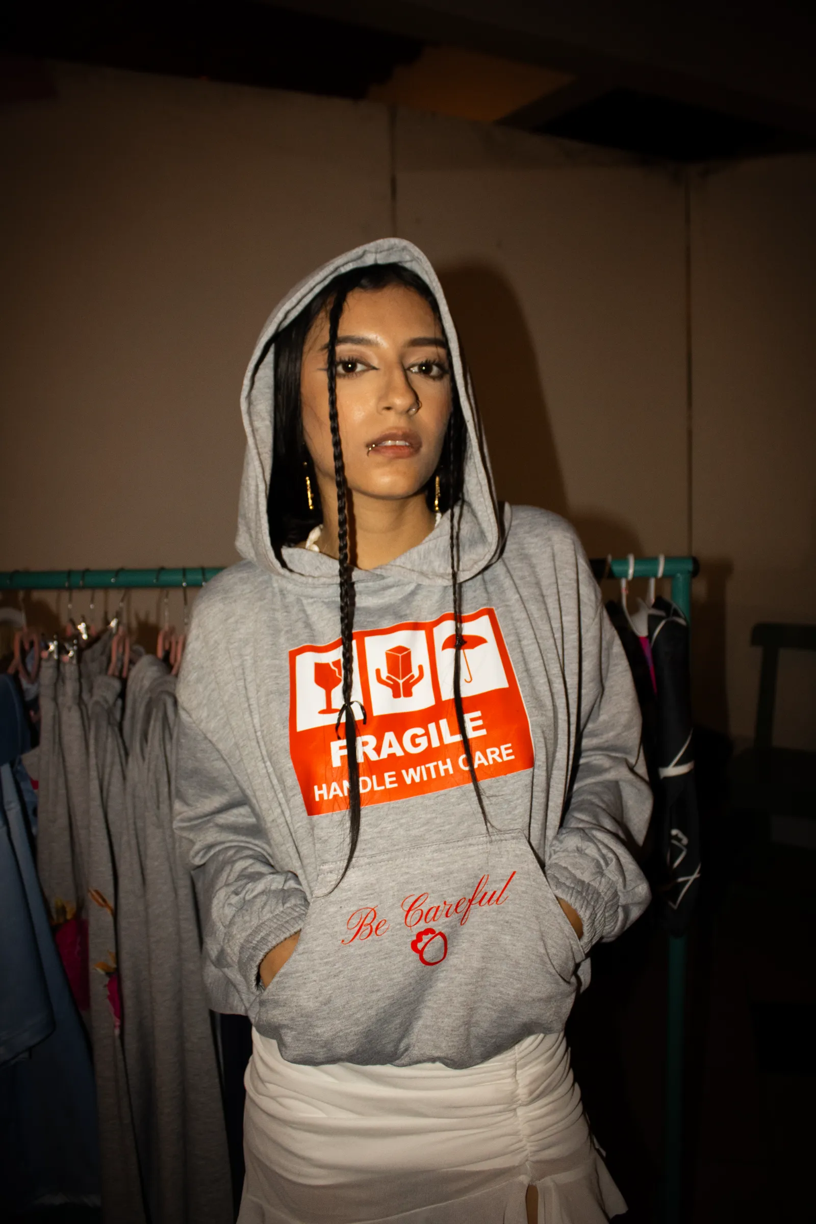 Hoodie Silueta Boxy Fit en algodón perchado gris con bolsillos delanteros, capucha y estampado delantero de la marca en DTF. Cuidados: Lavar con agua fría, separando las prendas por colores. Utilizar detergente suave. Secar a la sombra y evitar el uso de secadora. Planchar del revés.